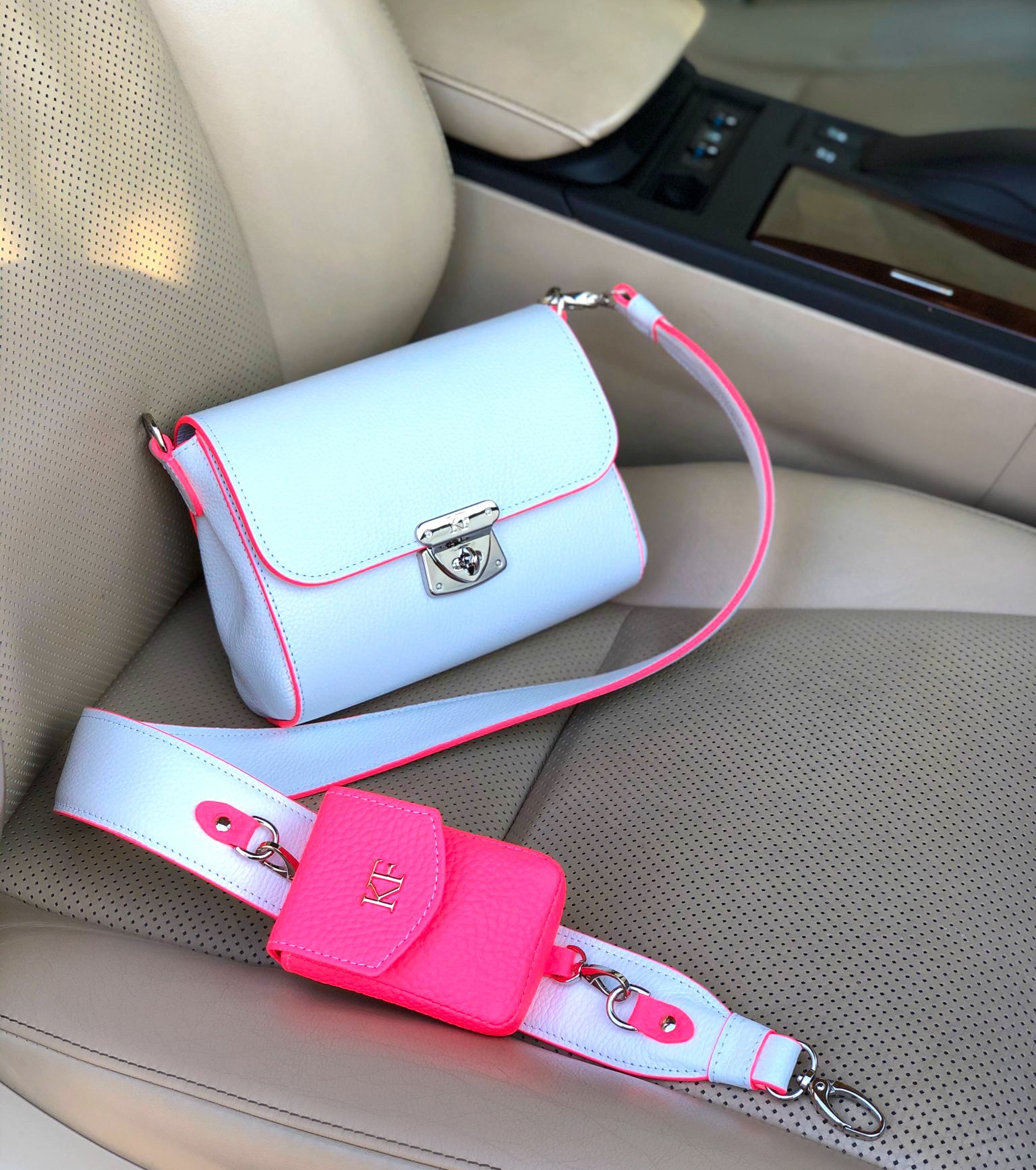 Leather Crossbody Bag, White Leather Shoulder Bag, Women's Leather Cross body Bag, Leather bag KF-3911