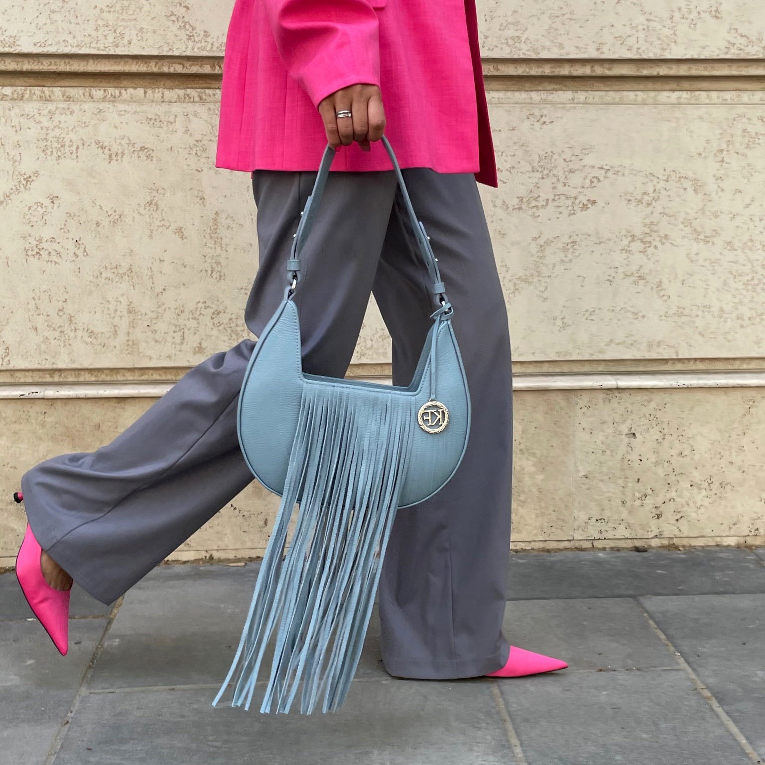 Leather Shoulder Bag, Blue Leather Shoulder Bag, Leather bag KF-4312