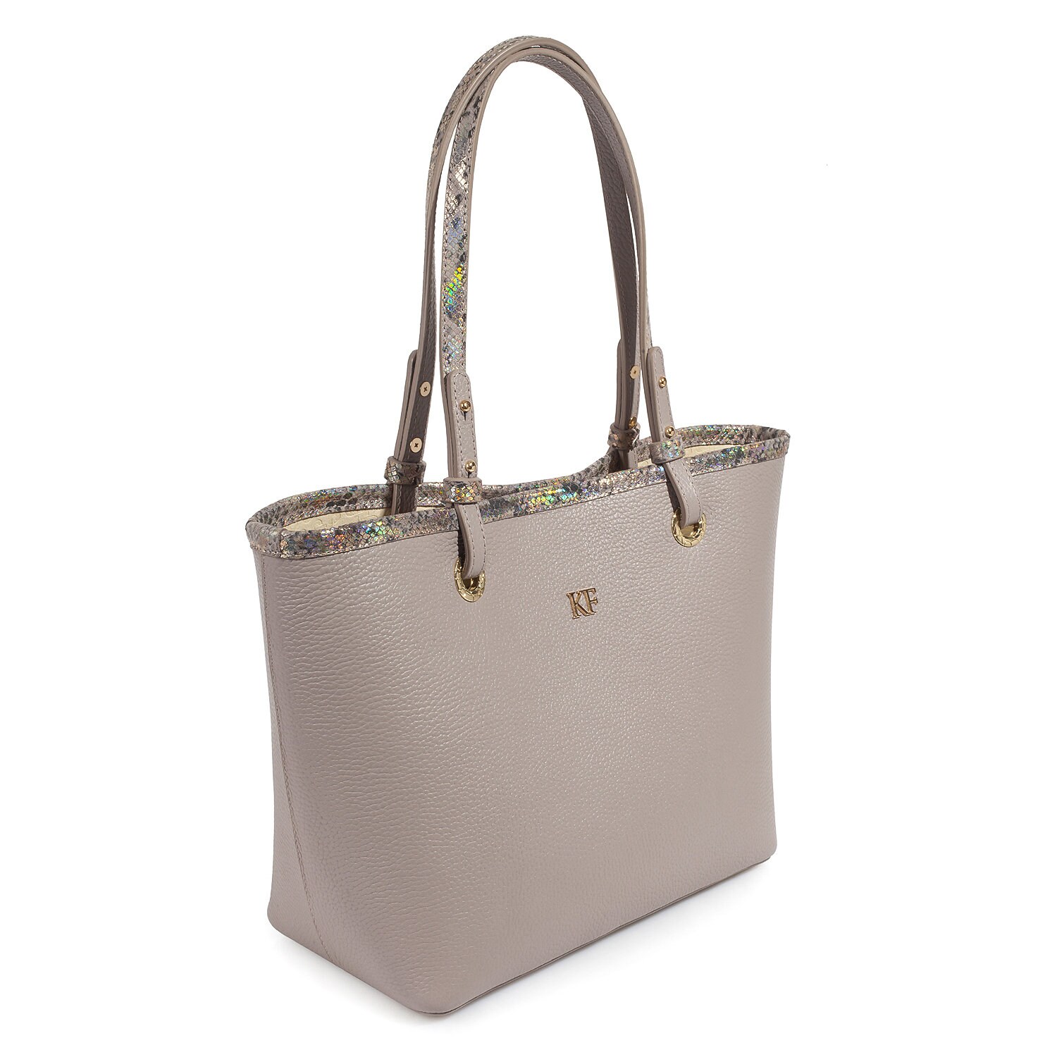 Leather Tote Bag, Gray Beige (light taupe) Leather Tote Bag, Women's Leather Tote Bag KF-3468