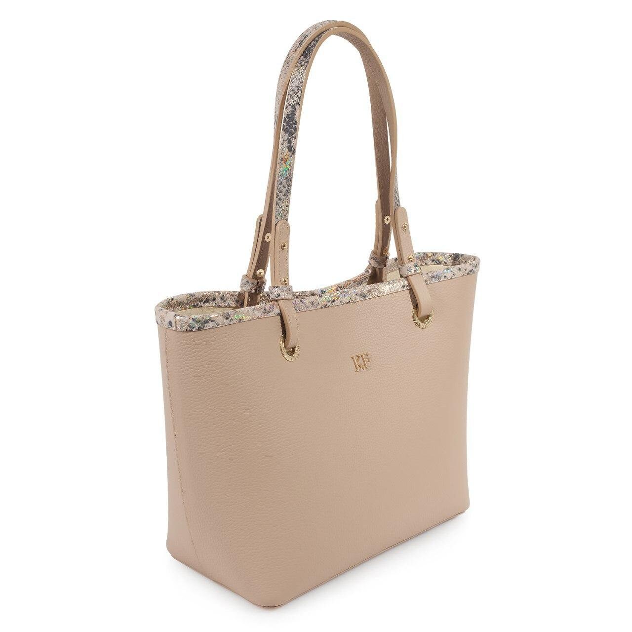 Leather Tote Bag, Beige Leather Tote Bag, Women's Leather Tote Bag KF-3467