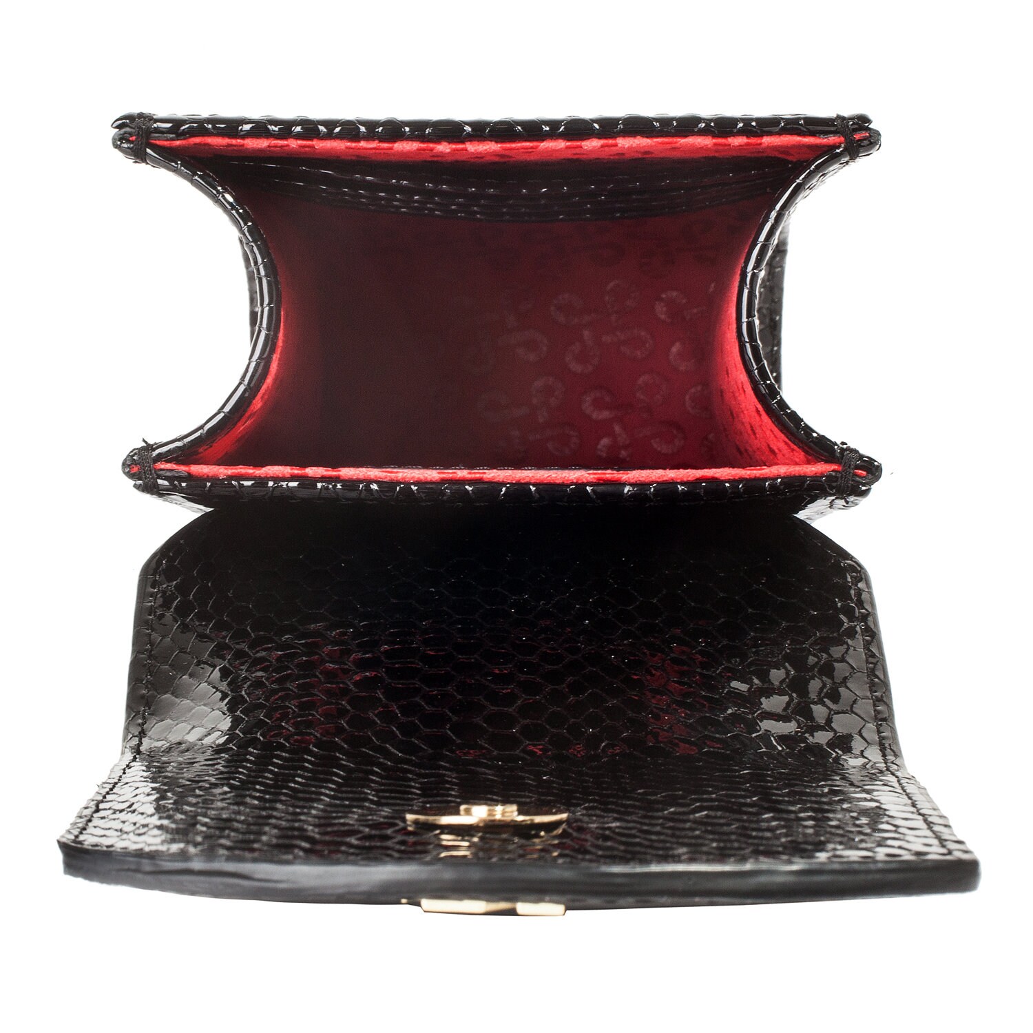 Black patent genuine leather woman crossbody bag from Ukrainian designer Katerina Fox. Fashionable and elegant modern bag KF for bright girls and women. This bag is able to attract attention and highlight your exquisite tastes. The internal space of a bag is equipped with one spacious compartment, four patch pockets for cards. The bag is closed on the button-magnet. The kit also includes a storage bag.