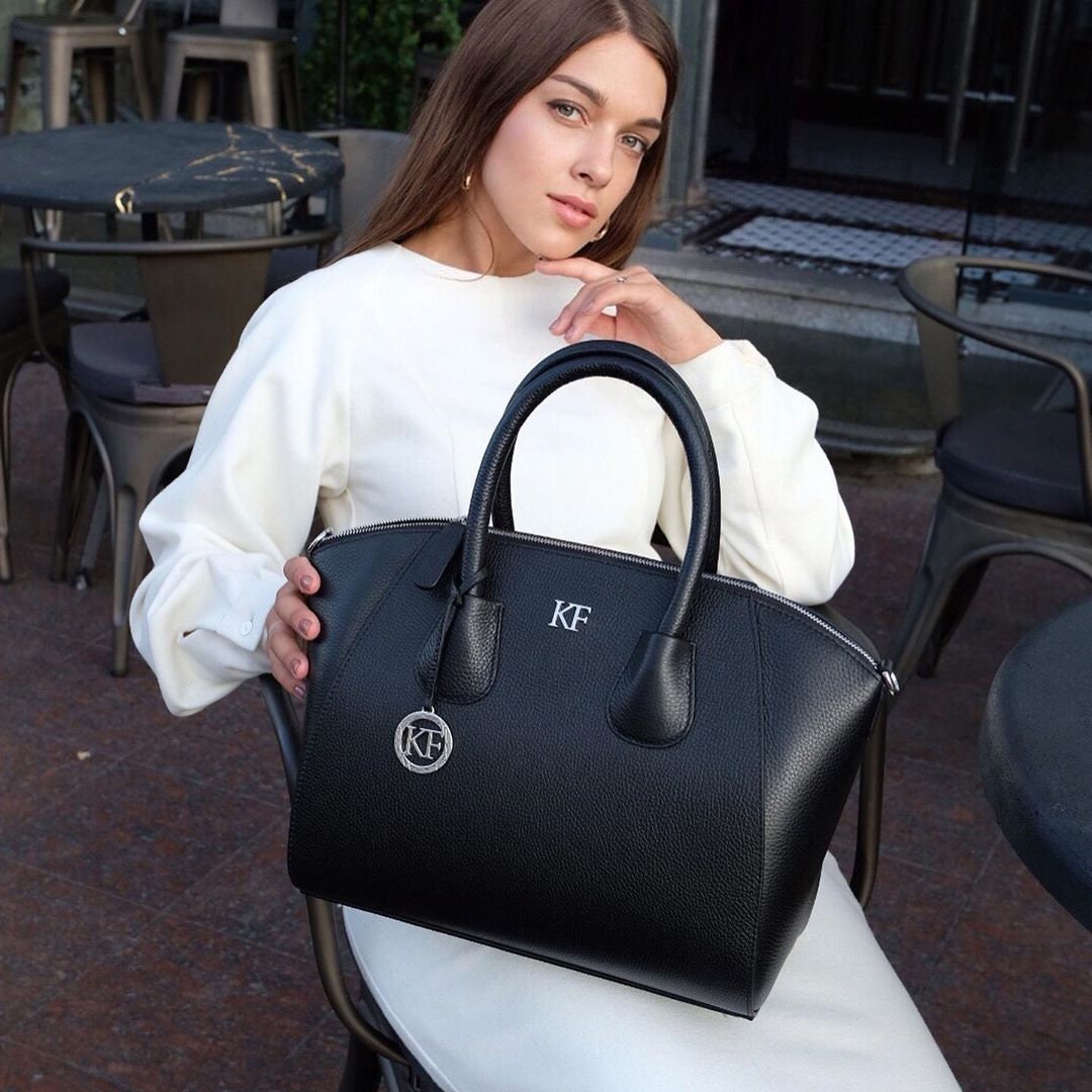 Black genuine leather woman handbag from ukrainian designer Katerina Fox , ideally combines the black crocodile print genuine leather and black leather trim which allows luxurious look and is perfect for any style . Roomy, comfortable bag has sturdy leather handles and includes adjustable long leather handle . All hardware what we use is good quality,reliable and durable. Inside the bag one large compartment , two patch pockets and one zip pocket, bag closes with a zipper . The bottom of the bag is protected by metal legs . This model looks very solid and stylish!