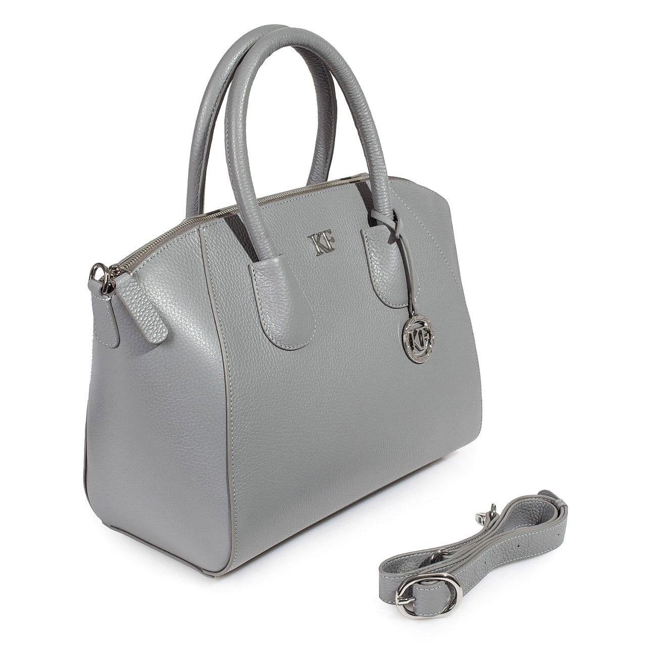 Leather Top Handle Bag, Dark Gray Leather Handbag Top Handle, Women's Leather Bag KF-3405
