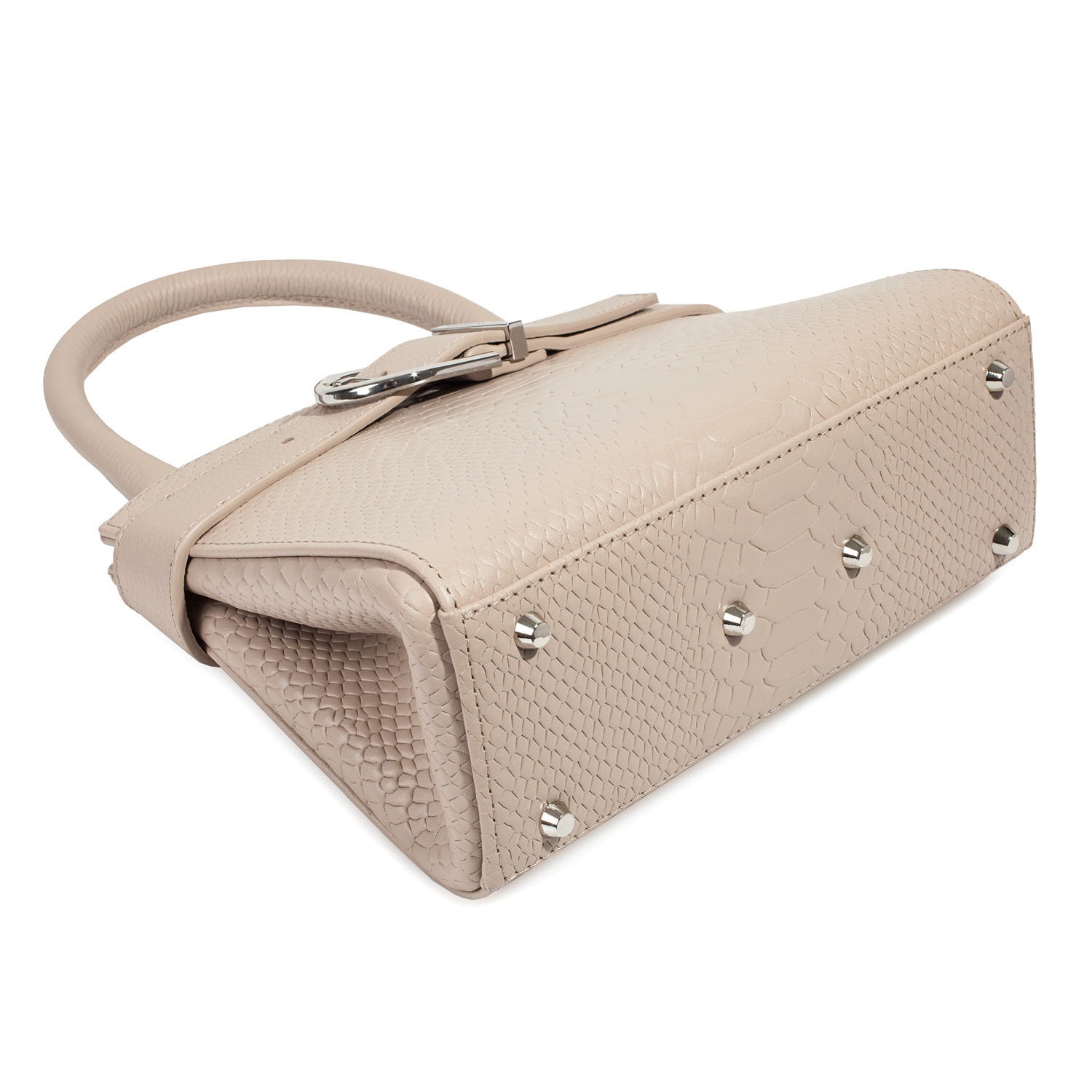 Women's leather bag made of genuine leather, hardware with galvanic coating and microfiber lining. The internal space of a bag is equipped with three compartments, one compartment and two side pockets, one with a zipper. §³loses with 3 magnet buttons. The bottom of the bag is protected with metal legs. There is a long handle that allows you to wear the bag on the shoulder. The kit also includes a storage bag.