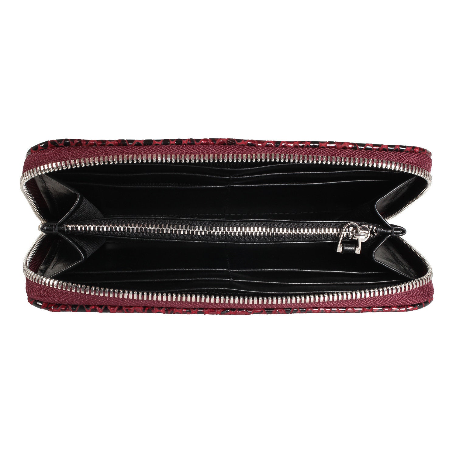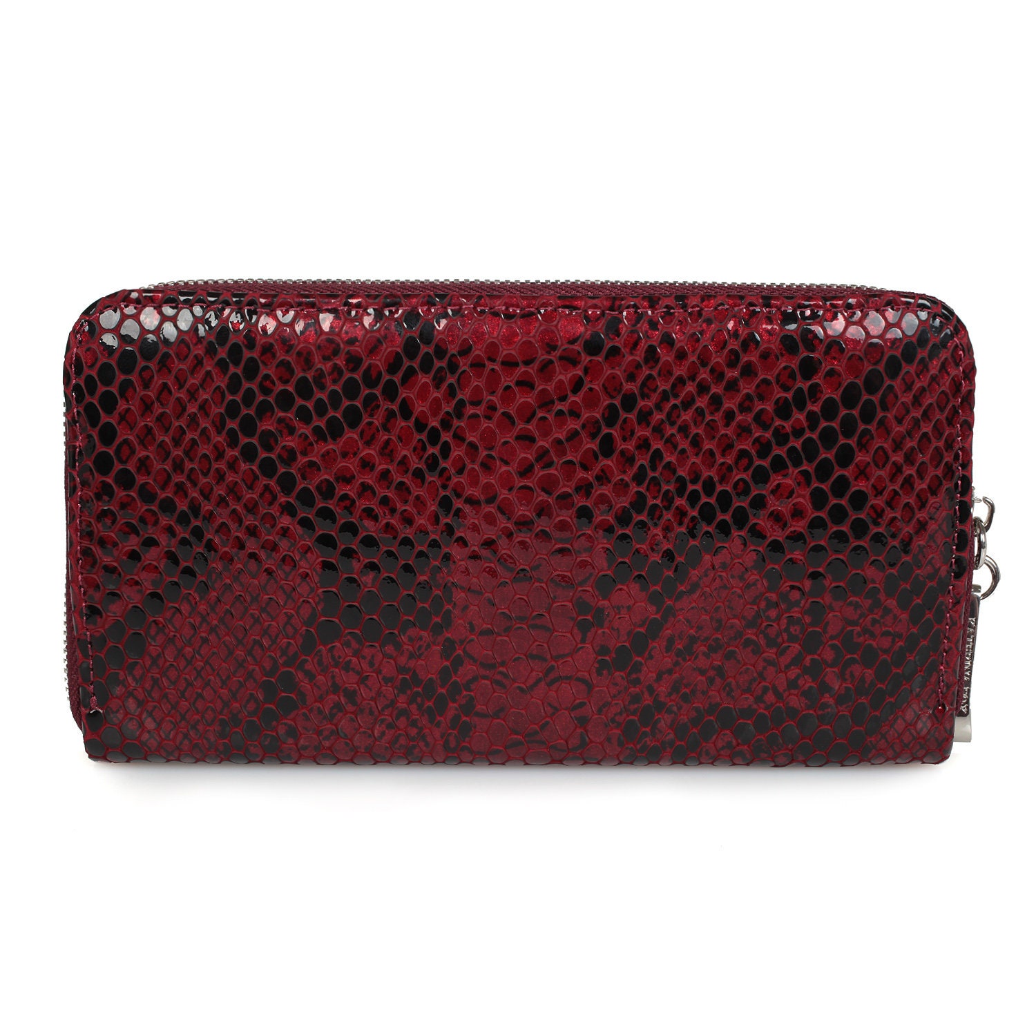 Red genuine leather snake print woman wallet from ukrainian designer Katerina Fox. A stylish accessory – a necessary purchase for many women. Wallet KF like women who value practicality and beauty. Inside two large compartments for notes, separating zipper pocket for coins, nine pockets for business cards and two department, closed wallet on zipper. Wallet has a short handle on a removable wrist.