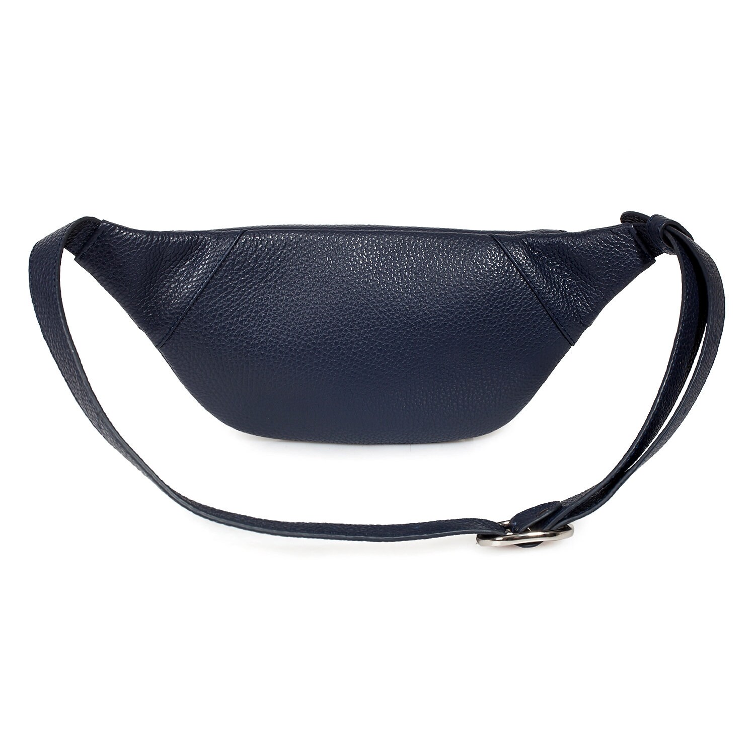Dark blue genuine leather woman bananka bag from ukrainian designer Katerina Fox. Fashionable and elegant modern bag KF for bright girls and women. This bag is able to attract attention and highlight your exquisite taste. Inside the bag is one large compartment and a convenient zippered pocket for small items, closes the bag on the zipper.